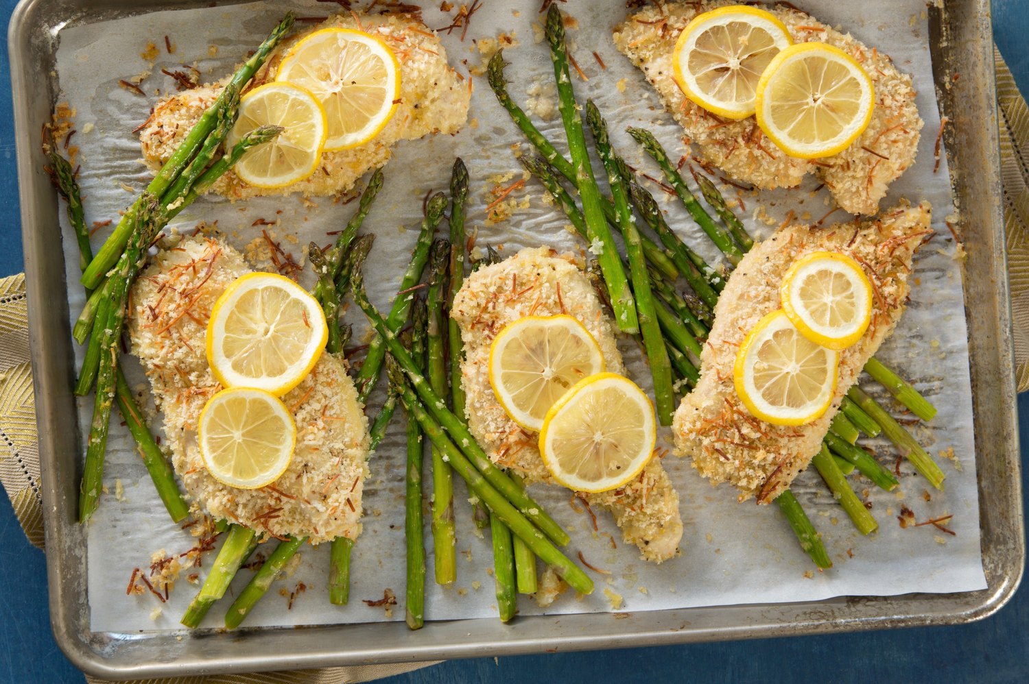 One-Pan Lemon Chicken Parmesan with Asparagus