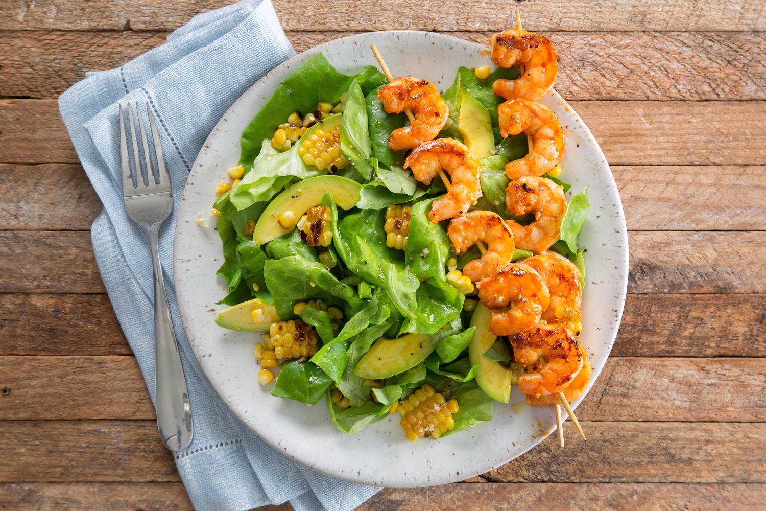 Grilled Shrimp, Corn, and Avocado Salad