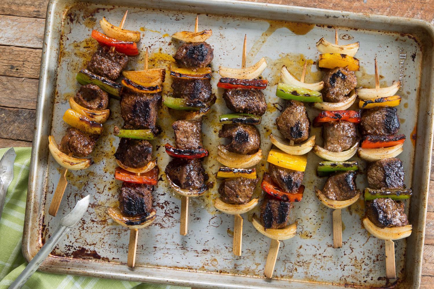 - 12 (2.5-oz) steak, bell pepper, and onion kabobs