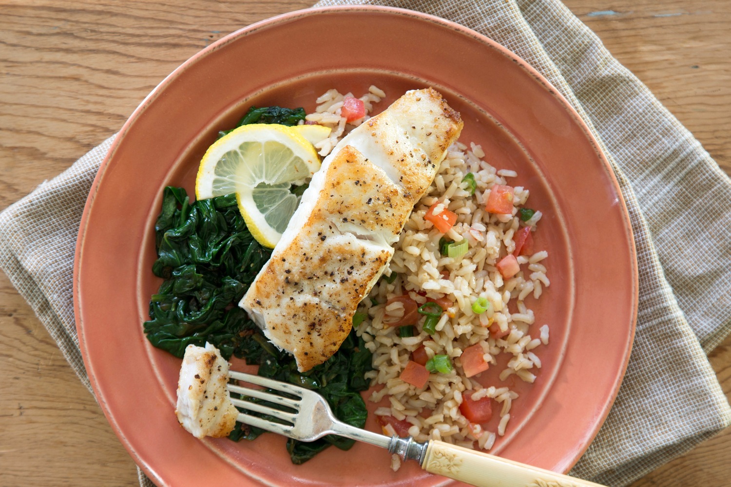 Pan-Seared Grouper with Lemon-Garlic Spinach