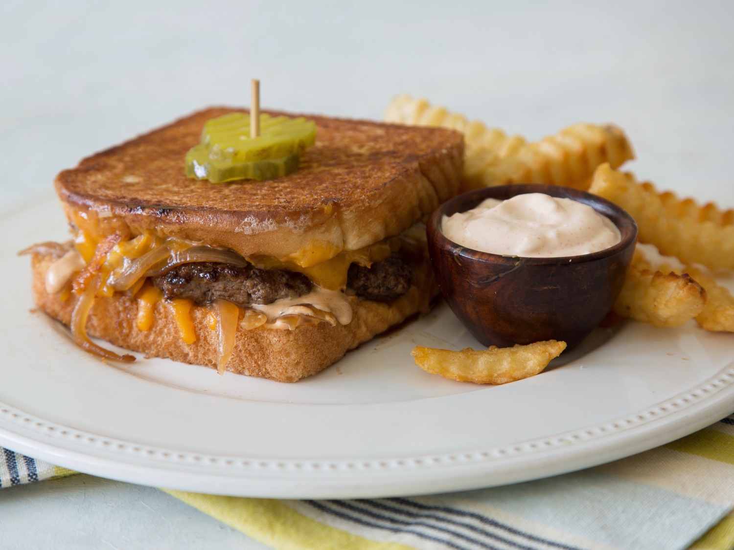 - Spread mayonnaise mixture on 1 side of each toast slice. Top 6 slices each with 1 slice cheese, onions, patties, and 1 slice cheese. Cover with 6 bread slices, sauce side down.