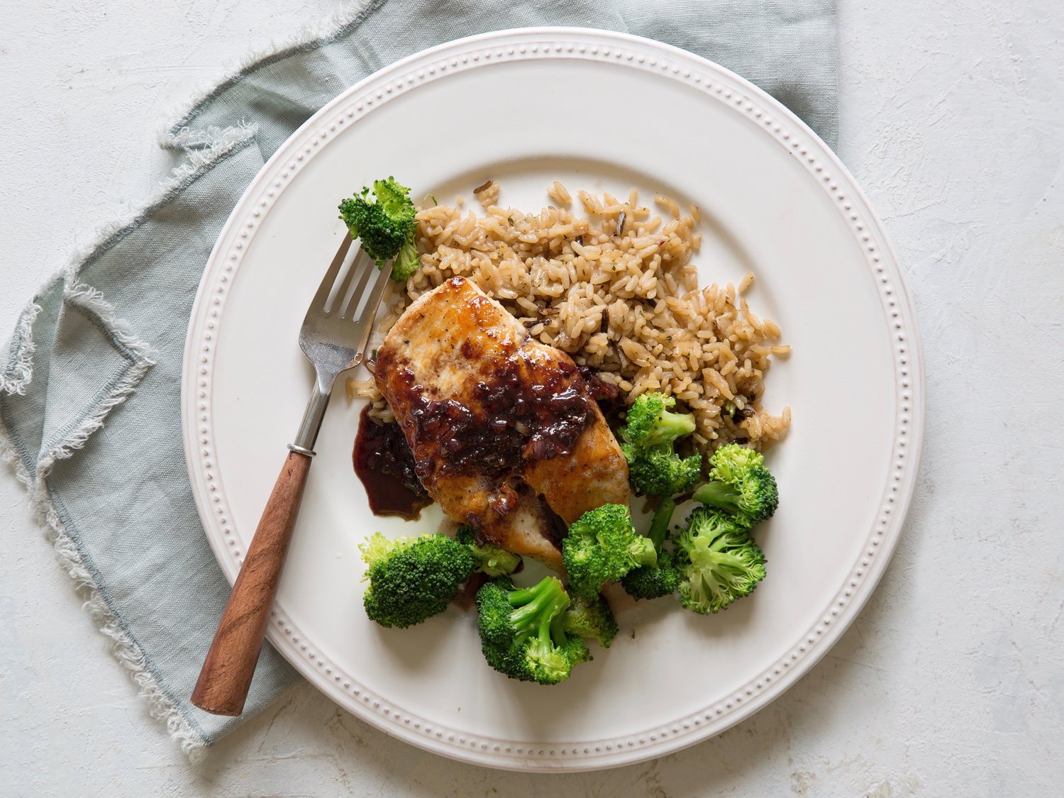 - Add preserves and vinegar to skillet. Cook, stirring occasionally, until preserves are melted. Spoon sauce over chicken.