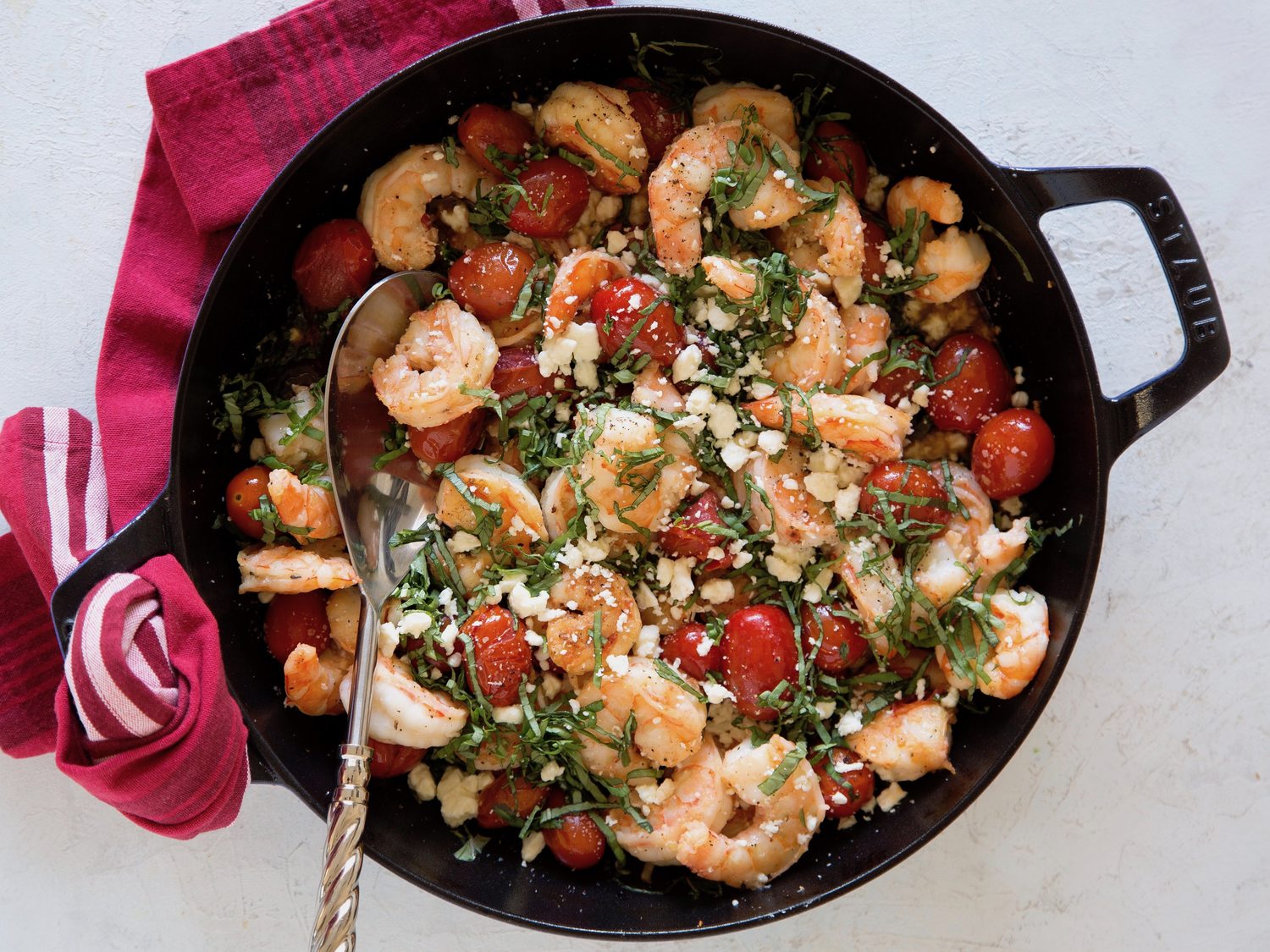 - Toss shrimp with tomato mixture, and sprinkle with cheese and basil.