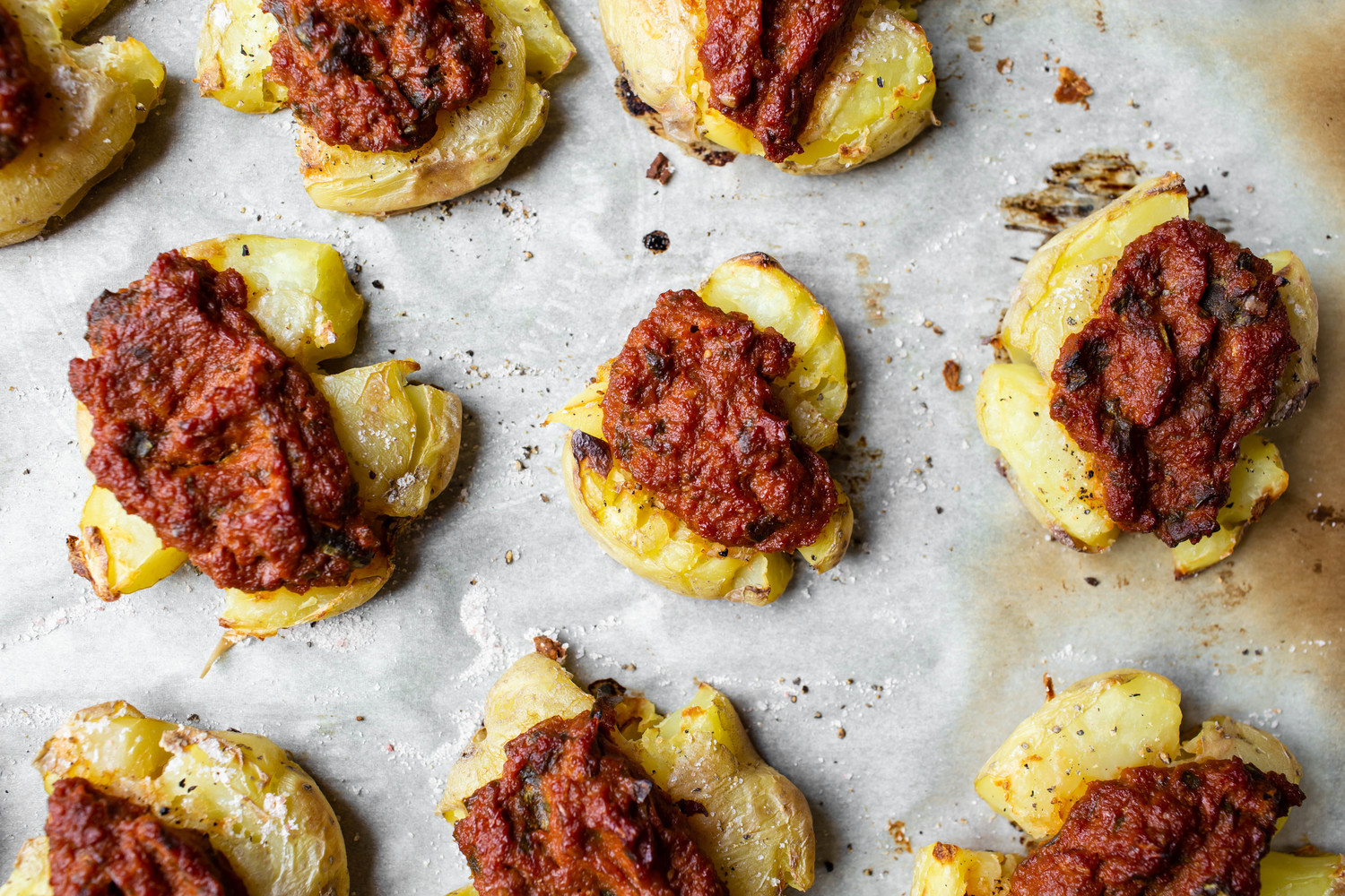 Sun-Dried Tomato Pesto with Smashed Potatoes