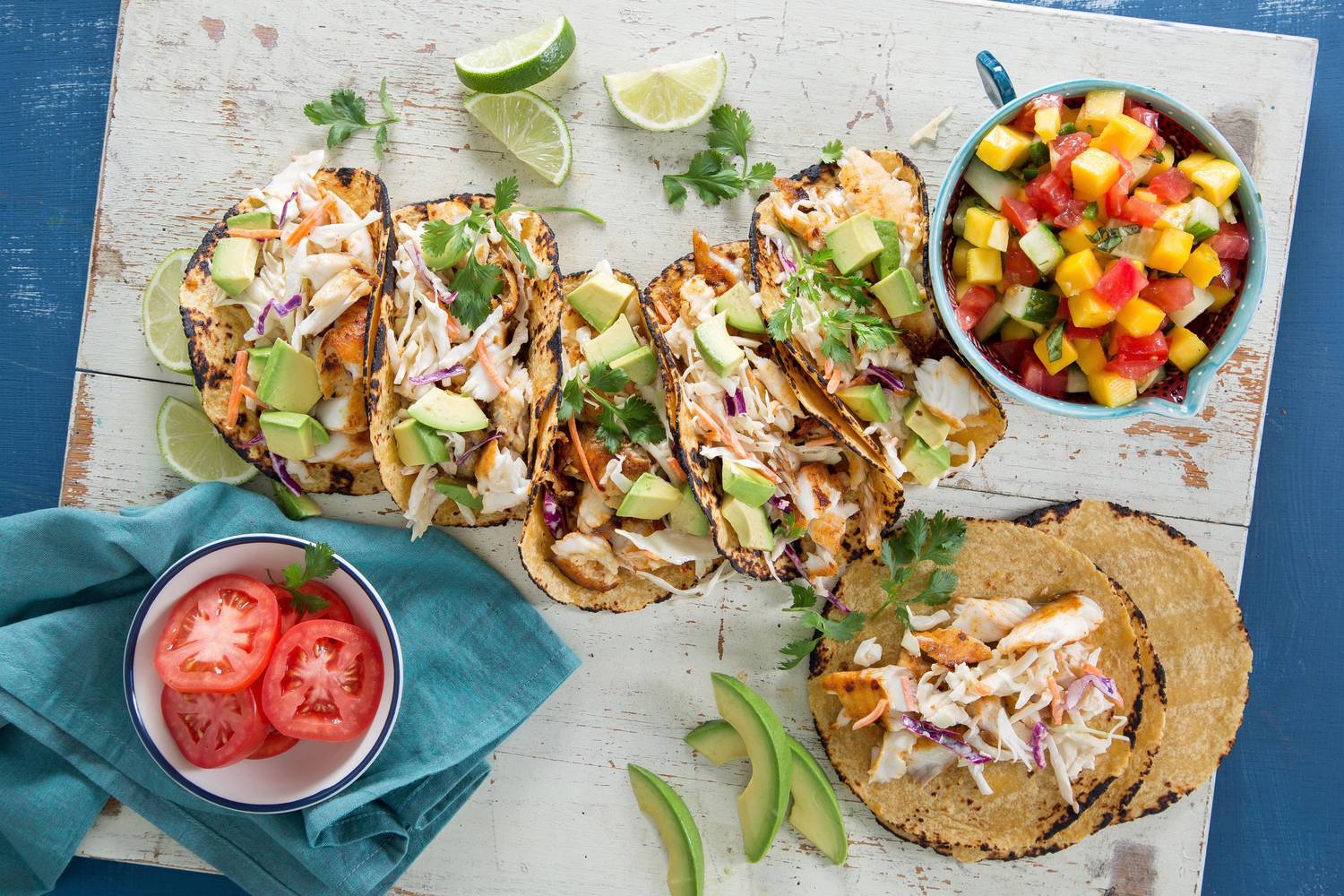 - Heat tortillas according to package directions. Top with fish, avocado, and slaw. Serve with lime wedges.