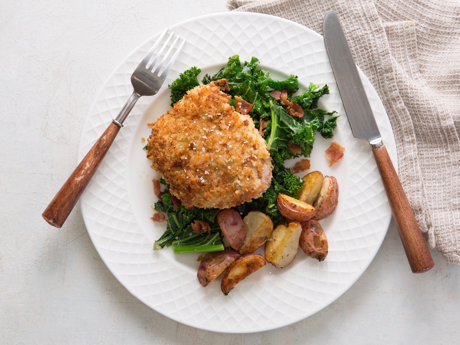 - Combine breadcrumbs, Parmesan and Italian seasoning in a shallow bowl. Lightly beat eggs in a second shallow bowl. Season pork lightly with salt and pepper. Dip pork chops in eggs; dredge in breadcrumb mixture, pressing to coat.