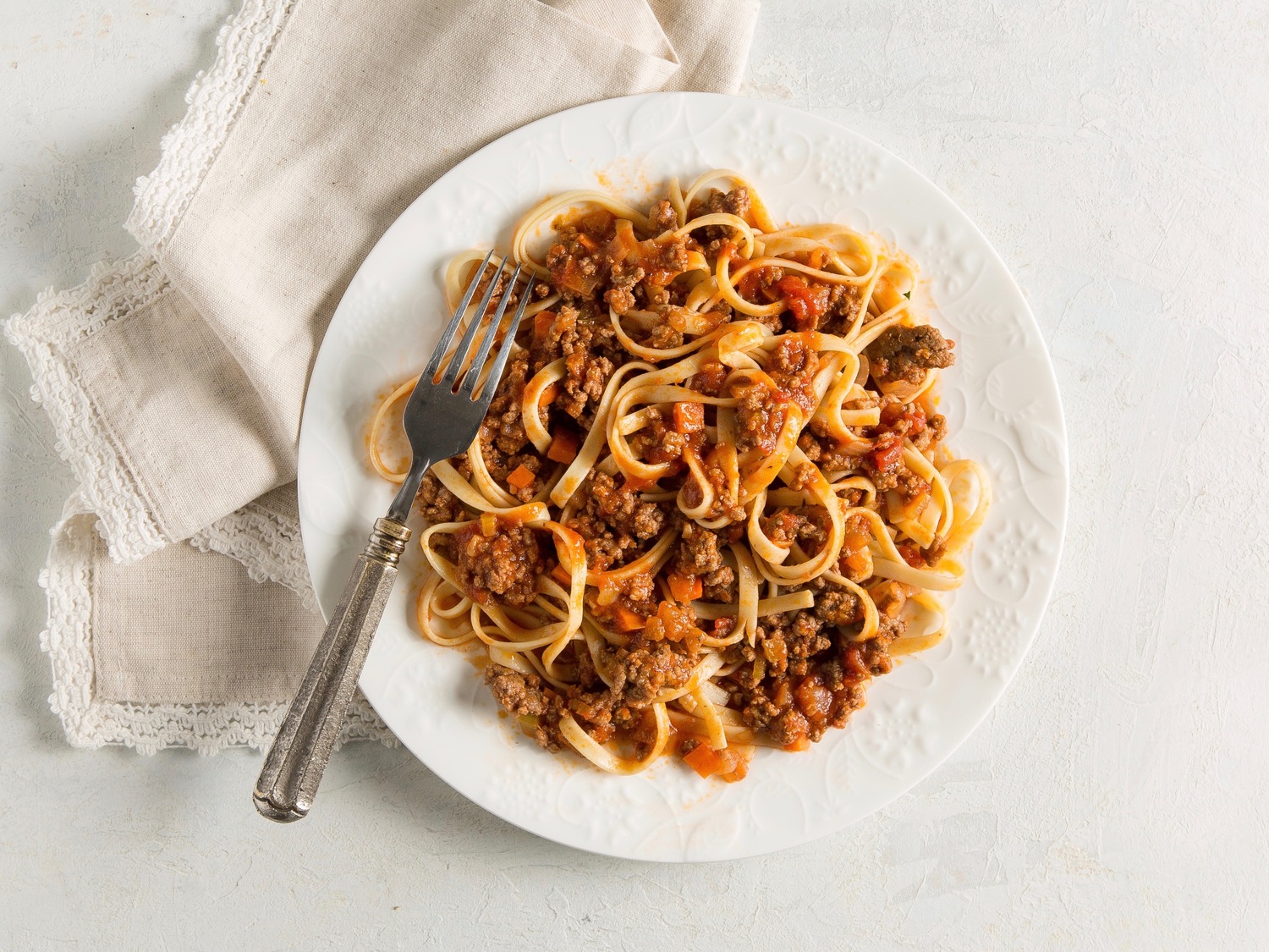 - Add beef and salt; cook 3 to 4 minutes. Add sauce, reduce heat to medium, and cook 5 to 6 minutes or until beef is browned and crumbly. Toss with pasta.