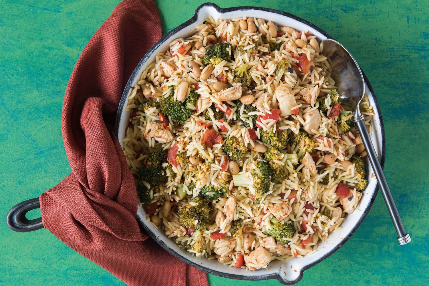 - Meanwhile, steam broccoli according to package directions; add to chicken mixture along with orzo. Toss and season with salt and pepper to taste.