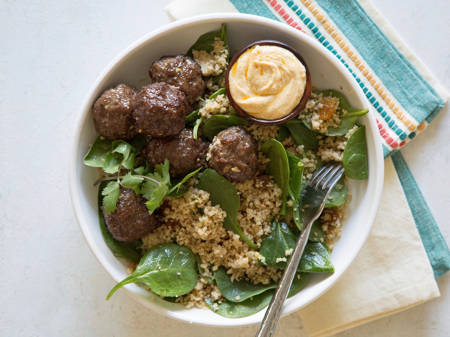 - Toss together warm couscous, spinach, and meatballs in a bowl.
