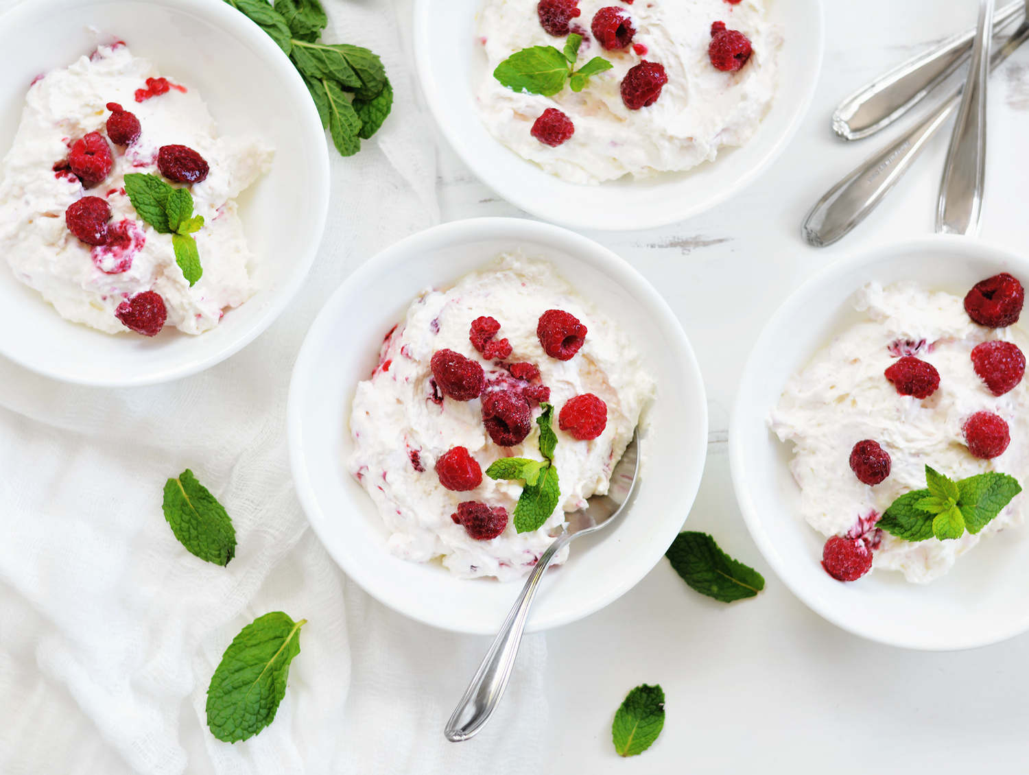 - Gently stir together Greek yogurt and yogurt mousse in a large bowl; fold in raspberries.