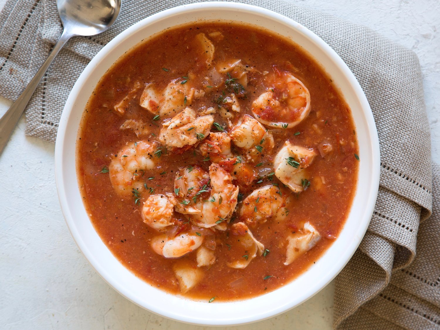 - Stir in tomatoes and water; simmer 20 minutes. Stir in fish and shrimp; cook 6 to 8 minutes or until fish flakes and shrimp turn pink.