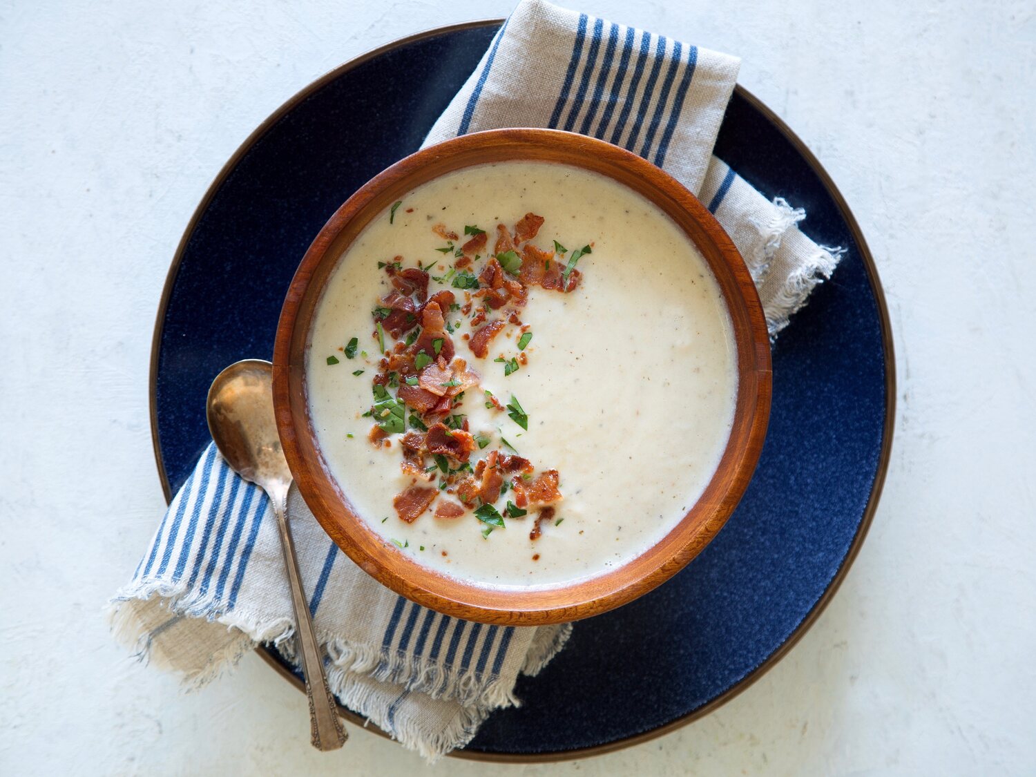 - Spoon into soup bowls; sprinkle with bacon.