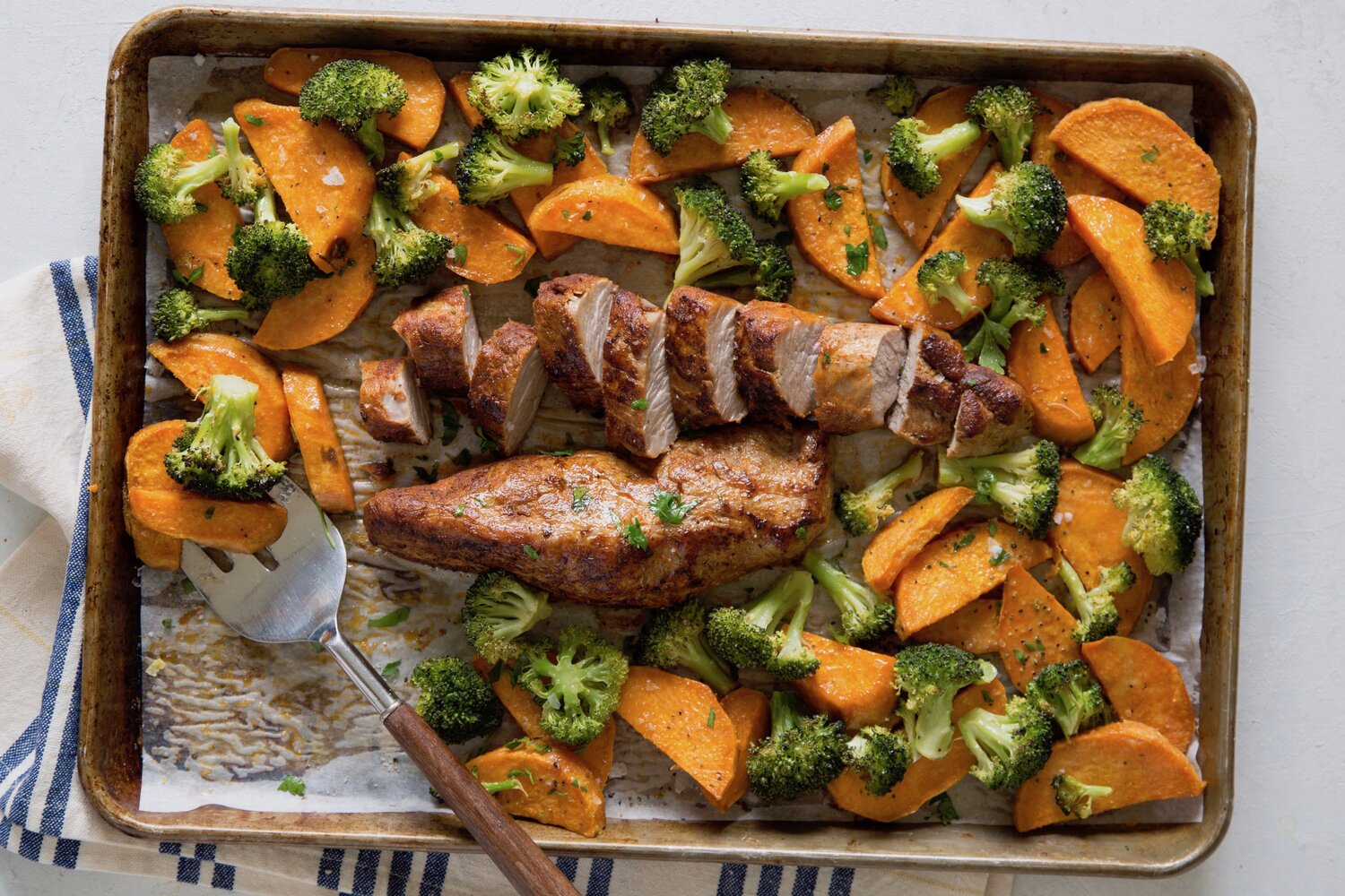 Smoky Pork Tenderloin, Sweet Potatoes, and Broccoli