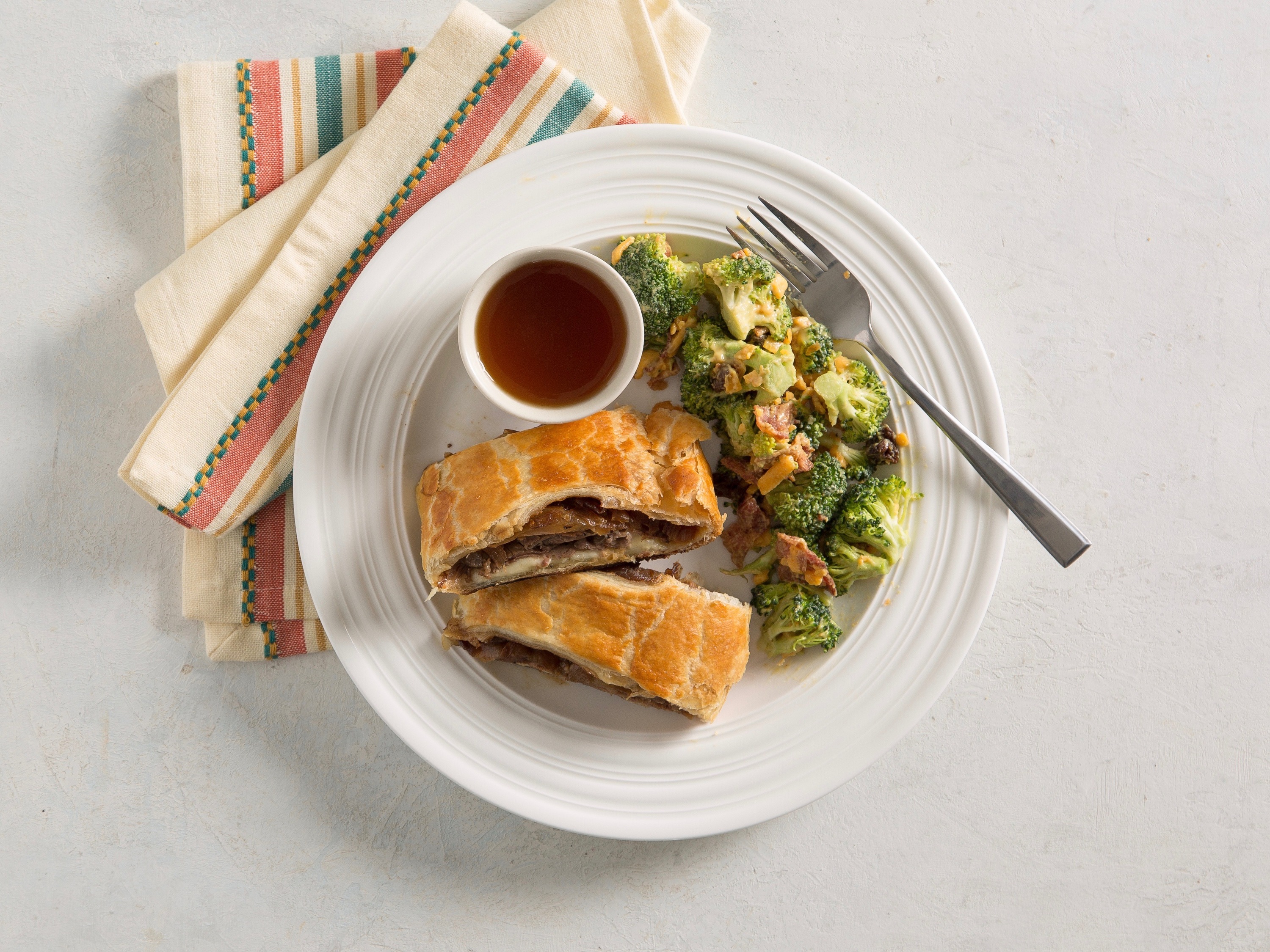 - Meanwhile, heat broth in a small saucepan over medium heat. Serve with hand pies for dipping.
