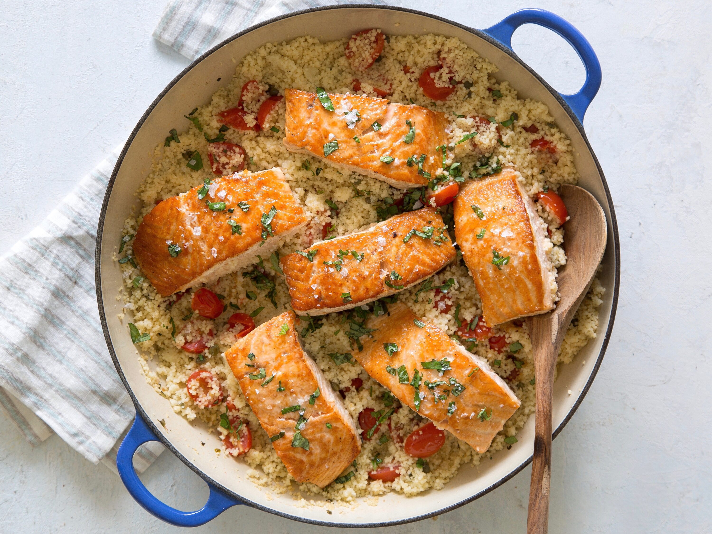 - Add lemon juice and wine to skillet, scraping skillet to loosen browned bits. Cook 2 minutes or until reduced by half. Stir in tomatoes, capers, and butter; cook 2 minutes or until slightly thickened. Stir in couscous. Serve fish over couscous.