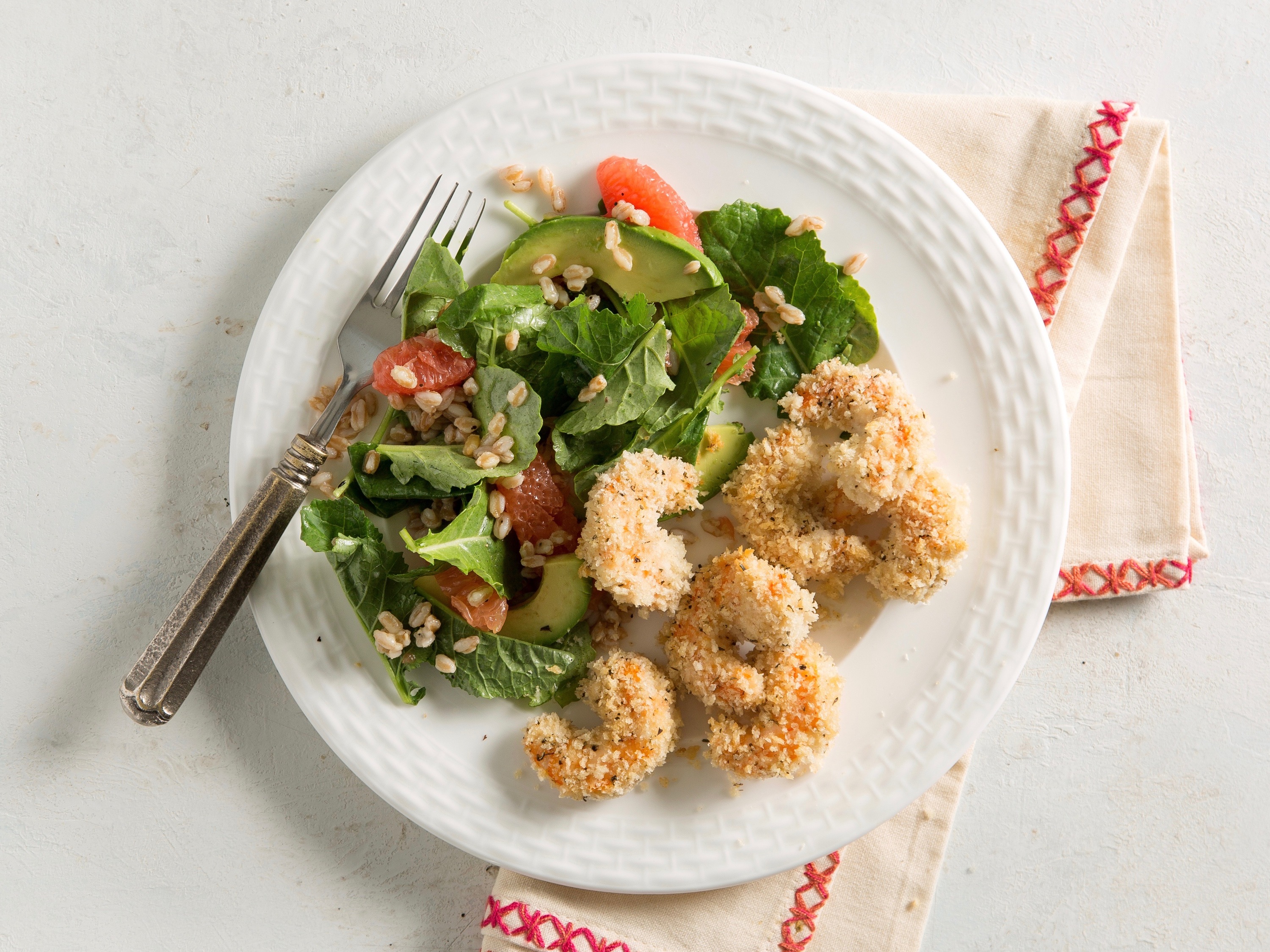 - Meanwhile, combine honey, oil, lime juice, salt, and pepper in a medium bowl. Add kale and farro; toss. Top with grapefruit and avocado.