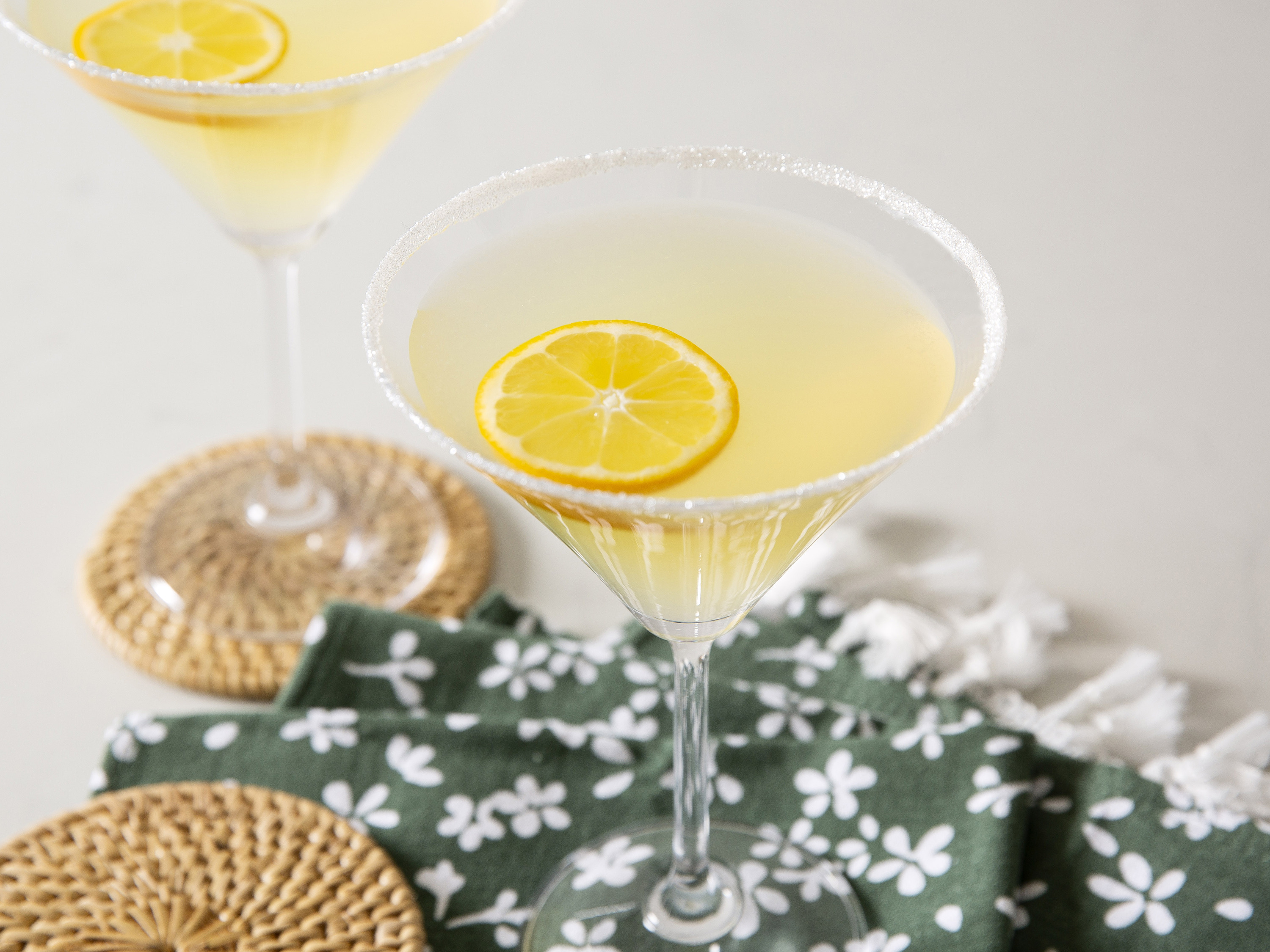 1. Sprinkle sugar on a small plate. Rub lemon wedge around rim of a martini glass; dip rim of glass in sugar to coat.